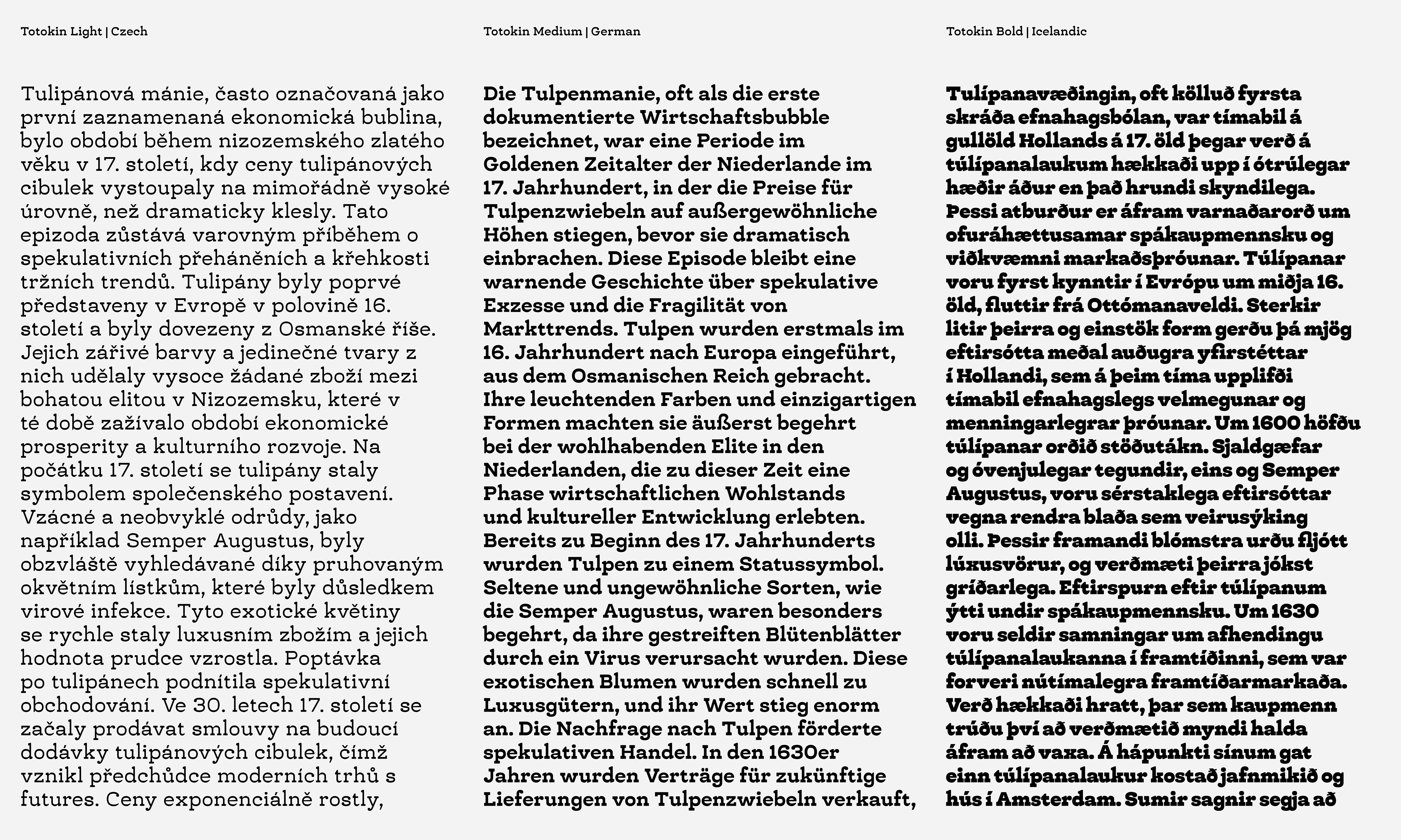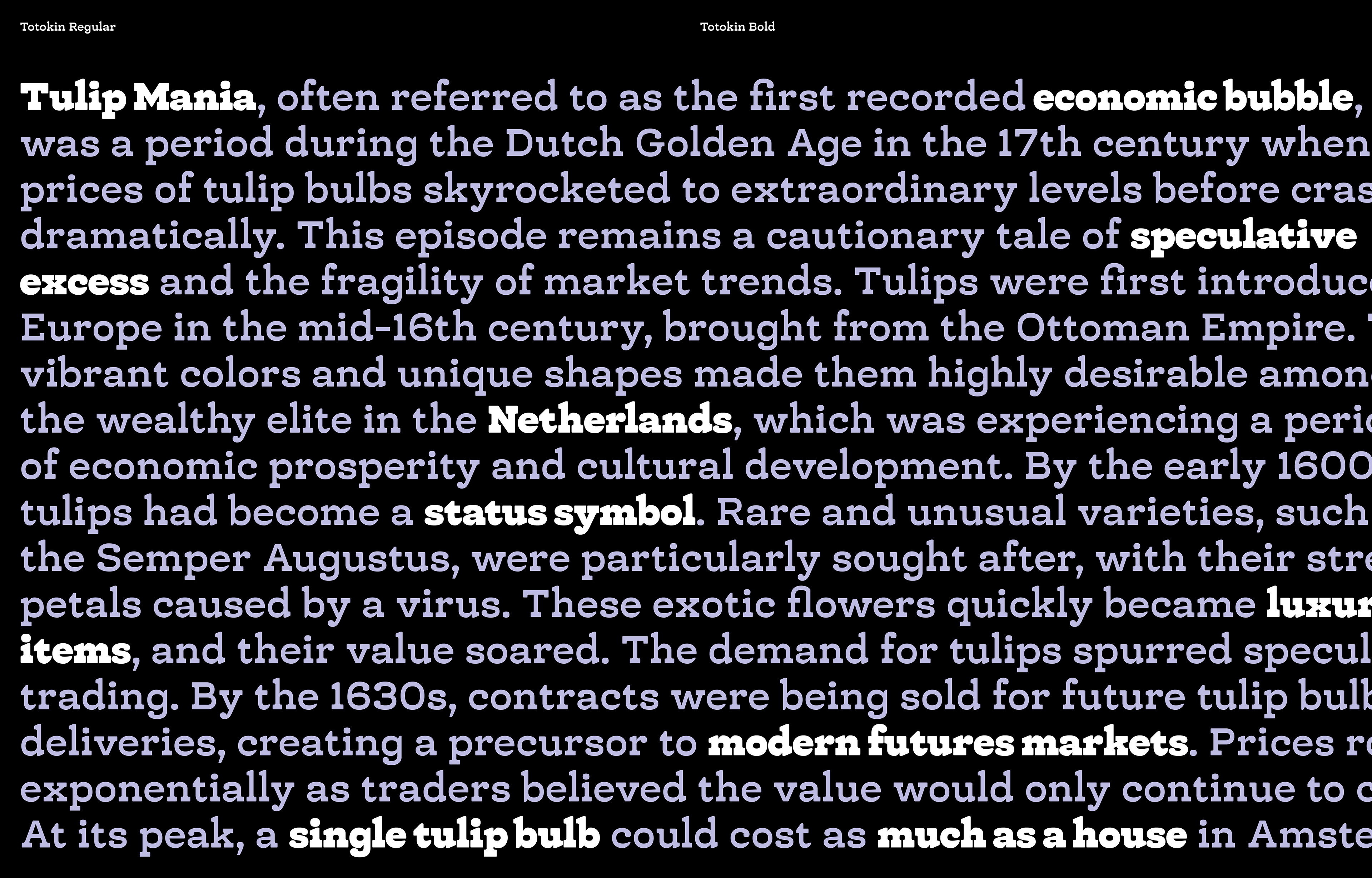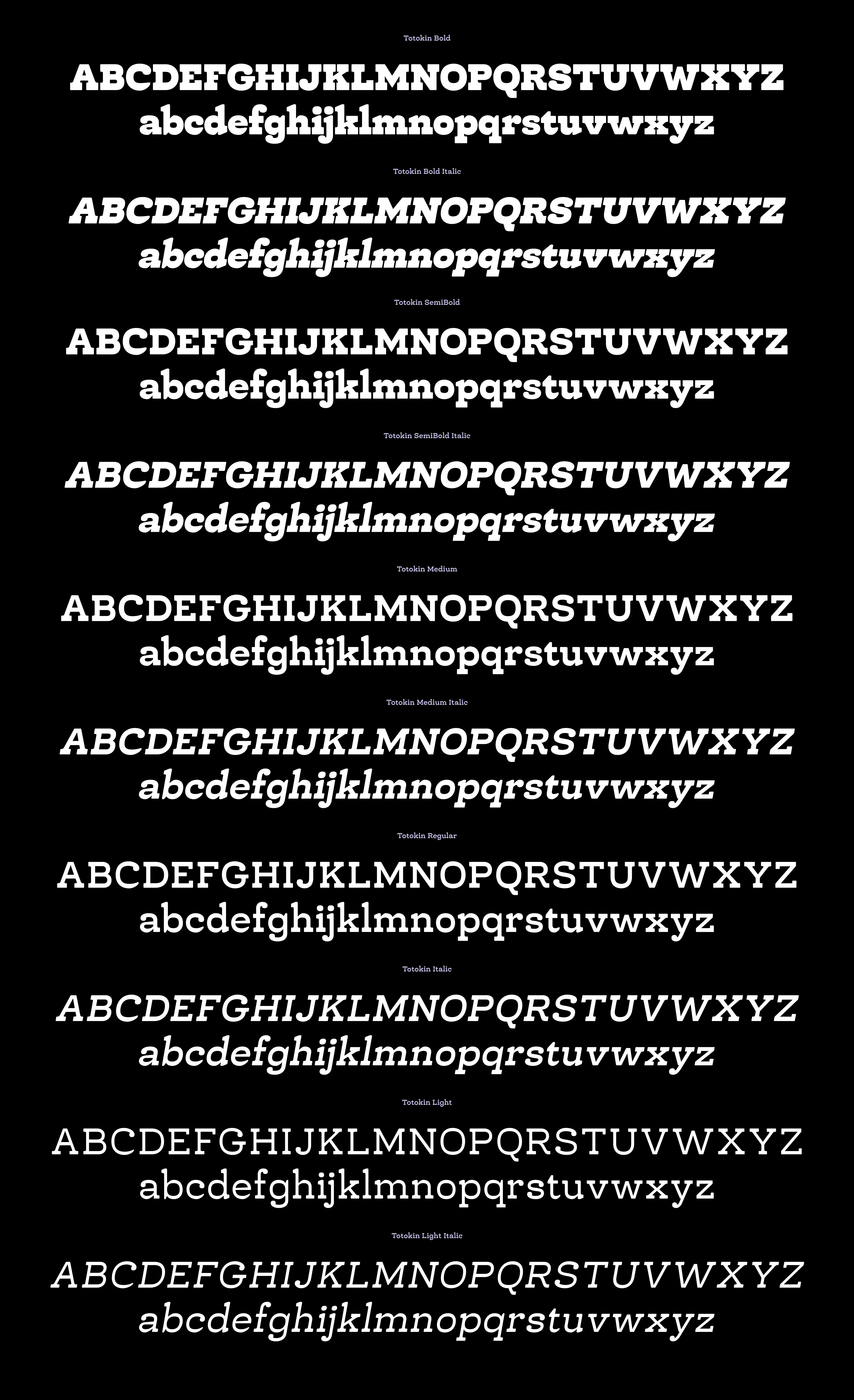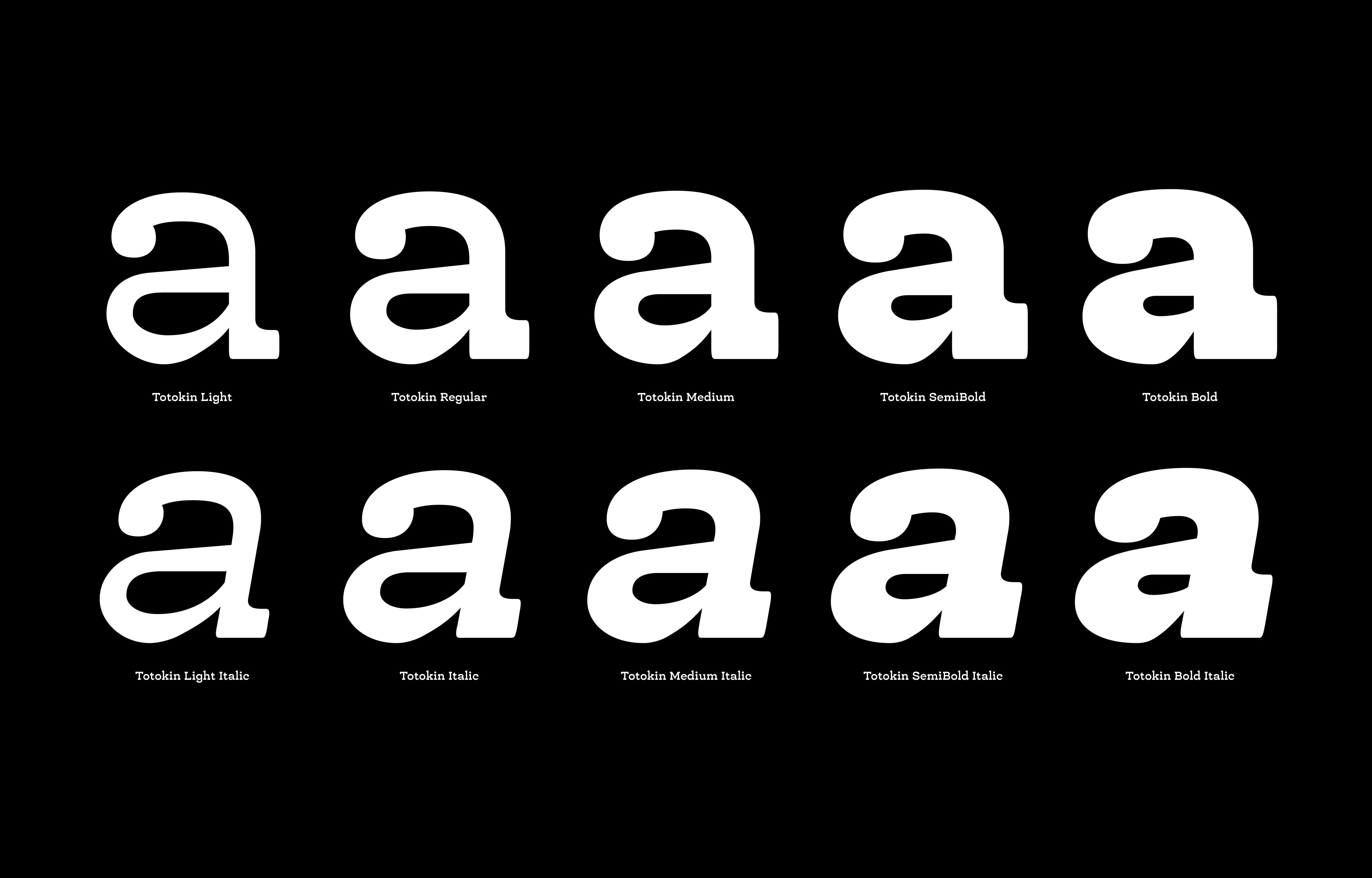 Totokin is a moderately reverse-contrast slab serif typeface, distinguished by its unique blend of soft curves, gentle forms, and sturdy structure. This defining style creates a harmonious balance between readability and visual appeal, making it a versatile choice for various design applications. The reverse-contrast feature, where horizontal strokes are thicker than vertical ones, lends Totokin a subtle but noticeable personality, setting it apart from traditional slab serif typefaces. While its primary purpose is for text, Totokin’s approachable yet robust aesthetic also makes it suitable for branding, editorial design, packaging, and signage. The softness in its letterforms adds a welcoming touch, while its solid construction ensures legibility and impact, even at smaller sizes.